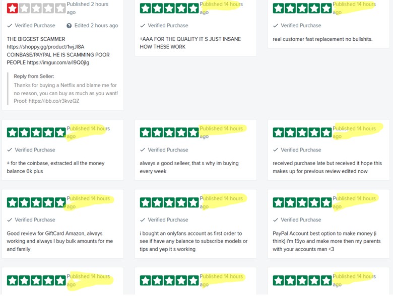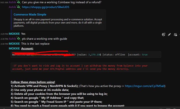 For refund he will ask 7 days and he will say his account is business account Shoppy takes 7 days to release crypto payment. After 7 days of product purchase you can’t leave review on shoppy. So, after 7 days will not refund you and you will not able to do anything. Also shoppy doesn’t hold crypto for 7 days, those who has shops know this. It takes max 1-2 days to release.