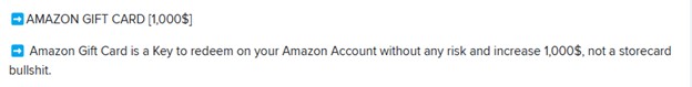 He mentioned that it’s a gift card. But it’s not. It’s a method including Amazon Fake Store card that can be generated by a specific BIN.