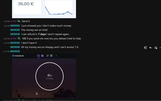 First of all, I want to say, this guy (moxxie) is a tricky scammer. He doesn’t scam and fly. He slowly eats you.